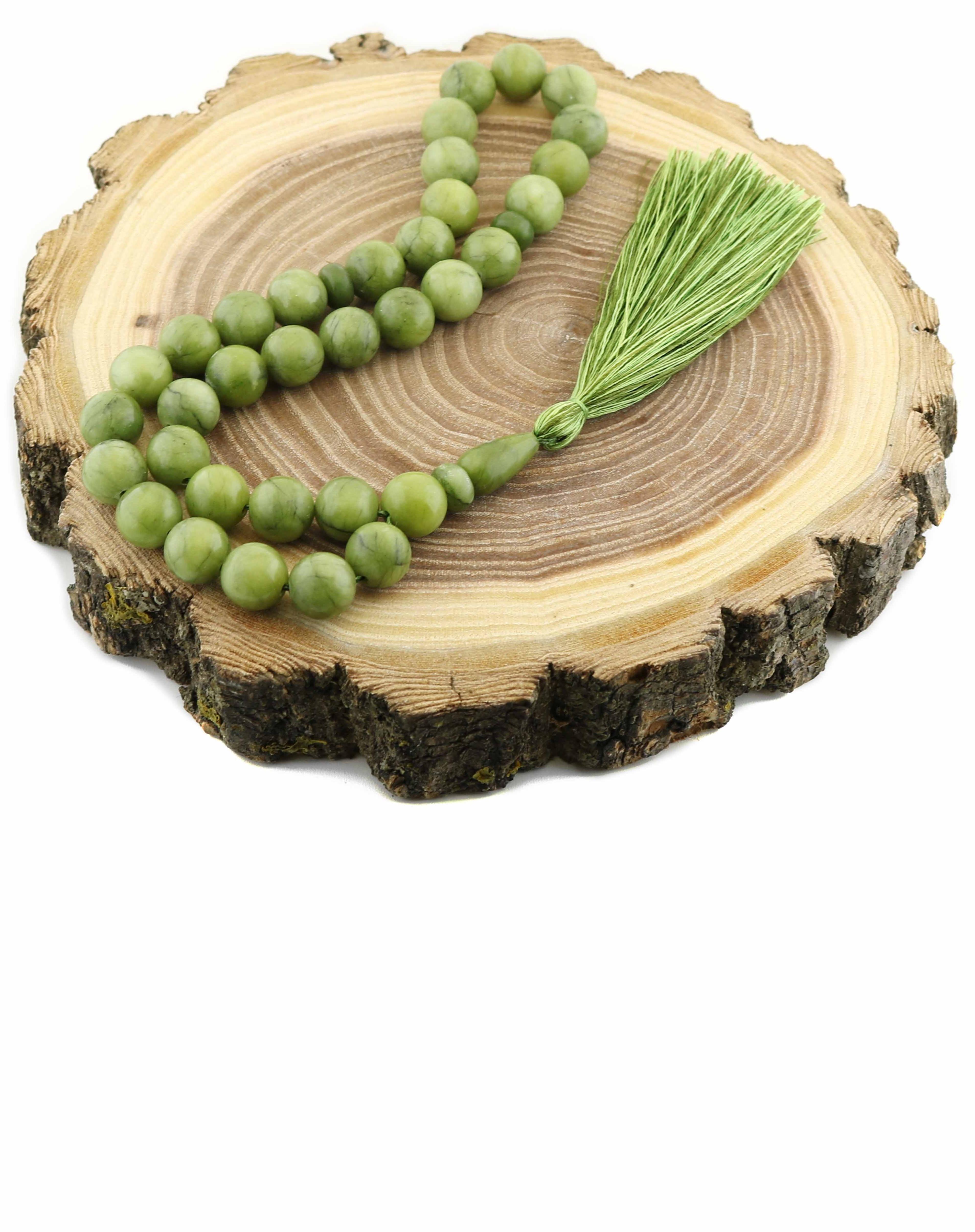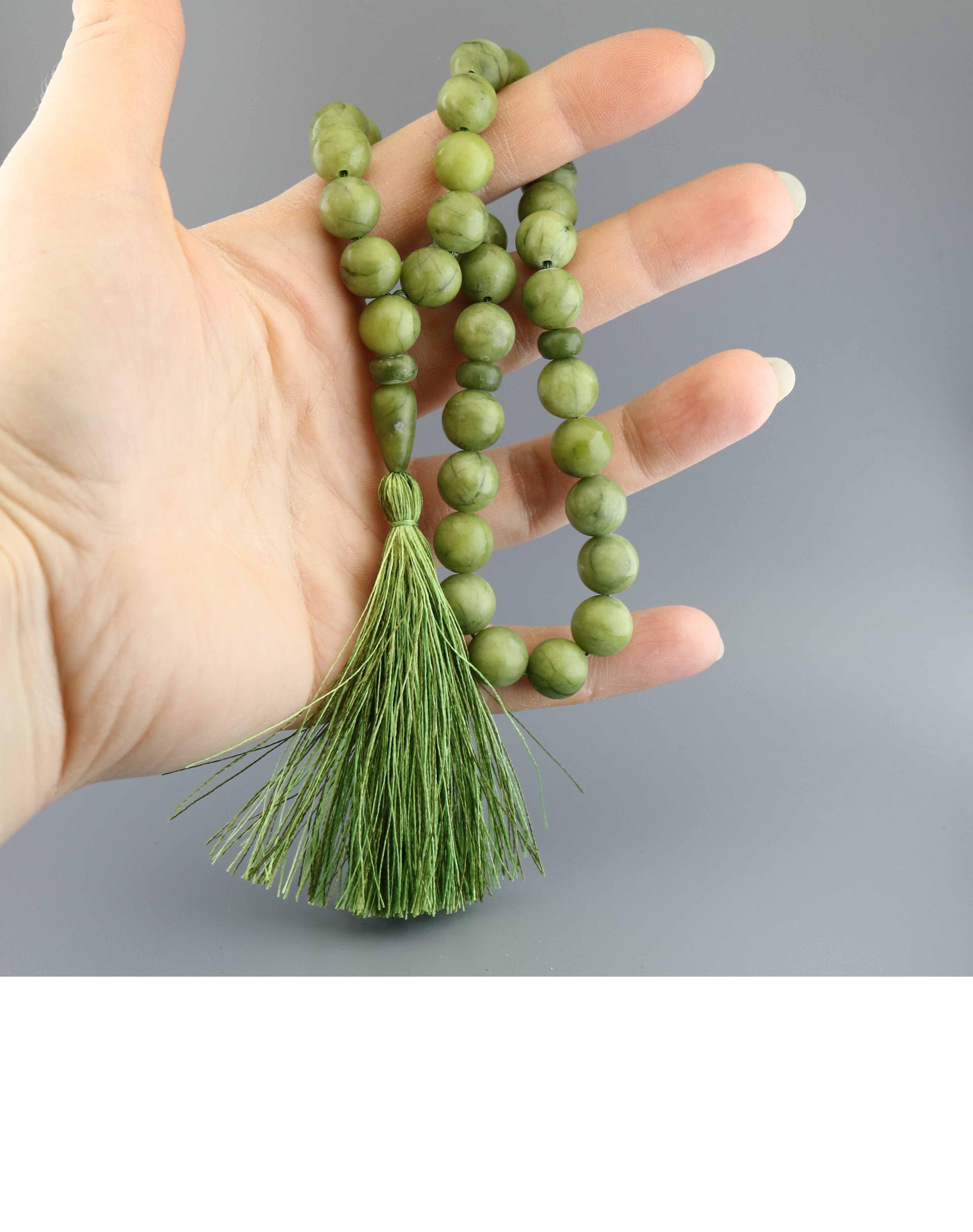 Мусульманские четки из светлого змеевика с шелковой кистью