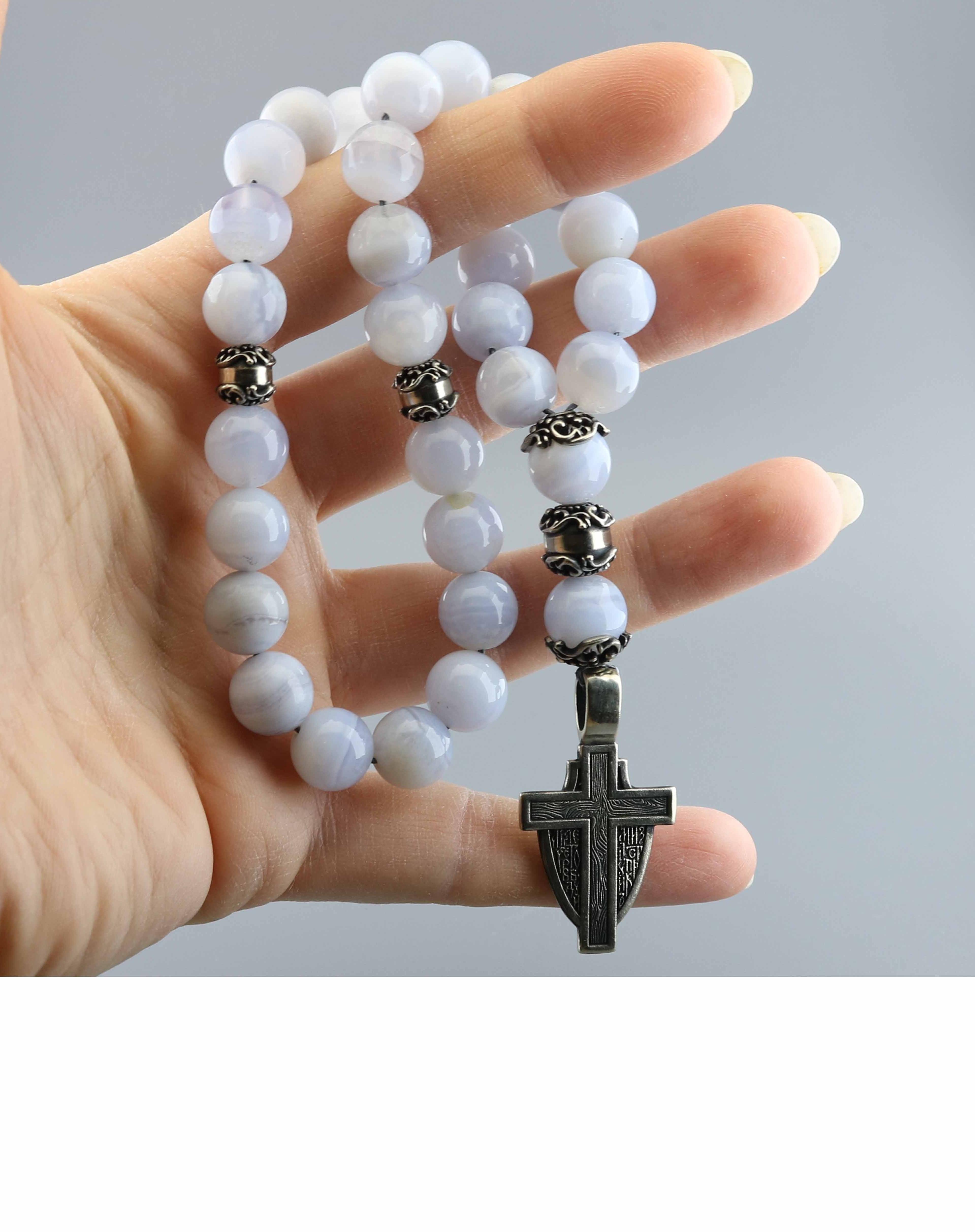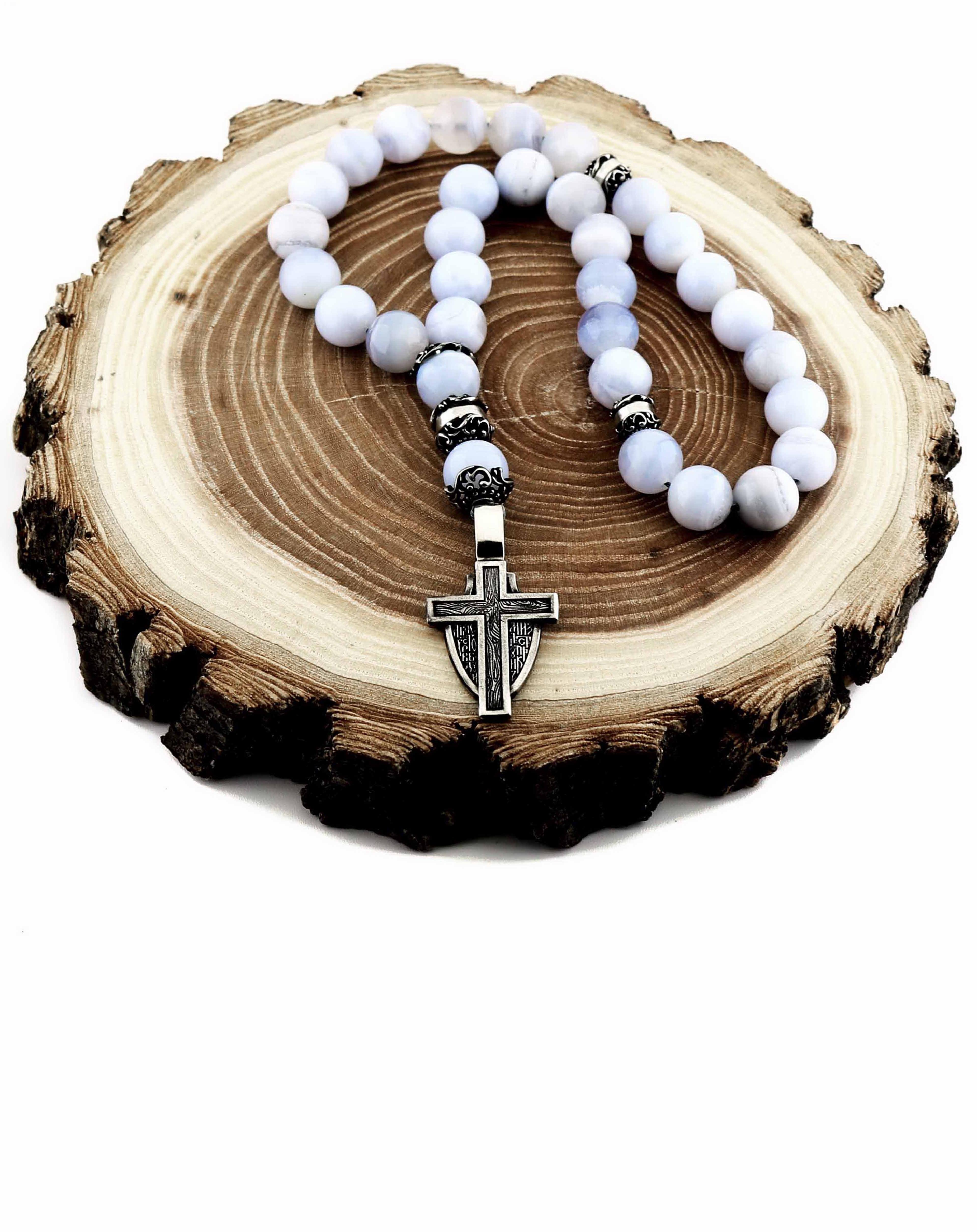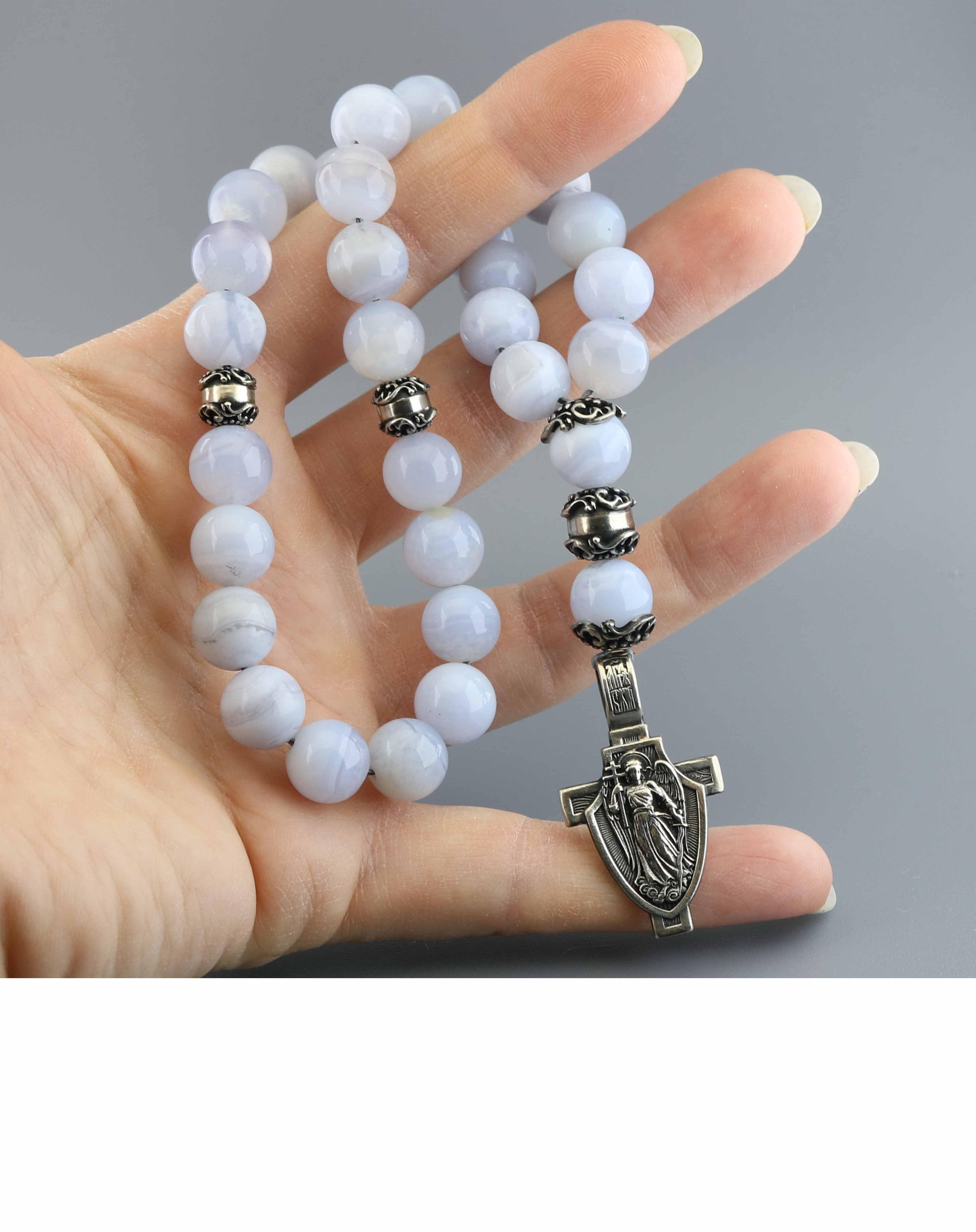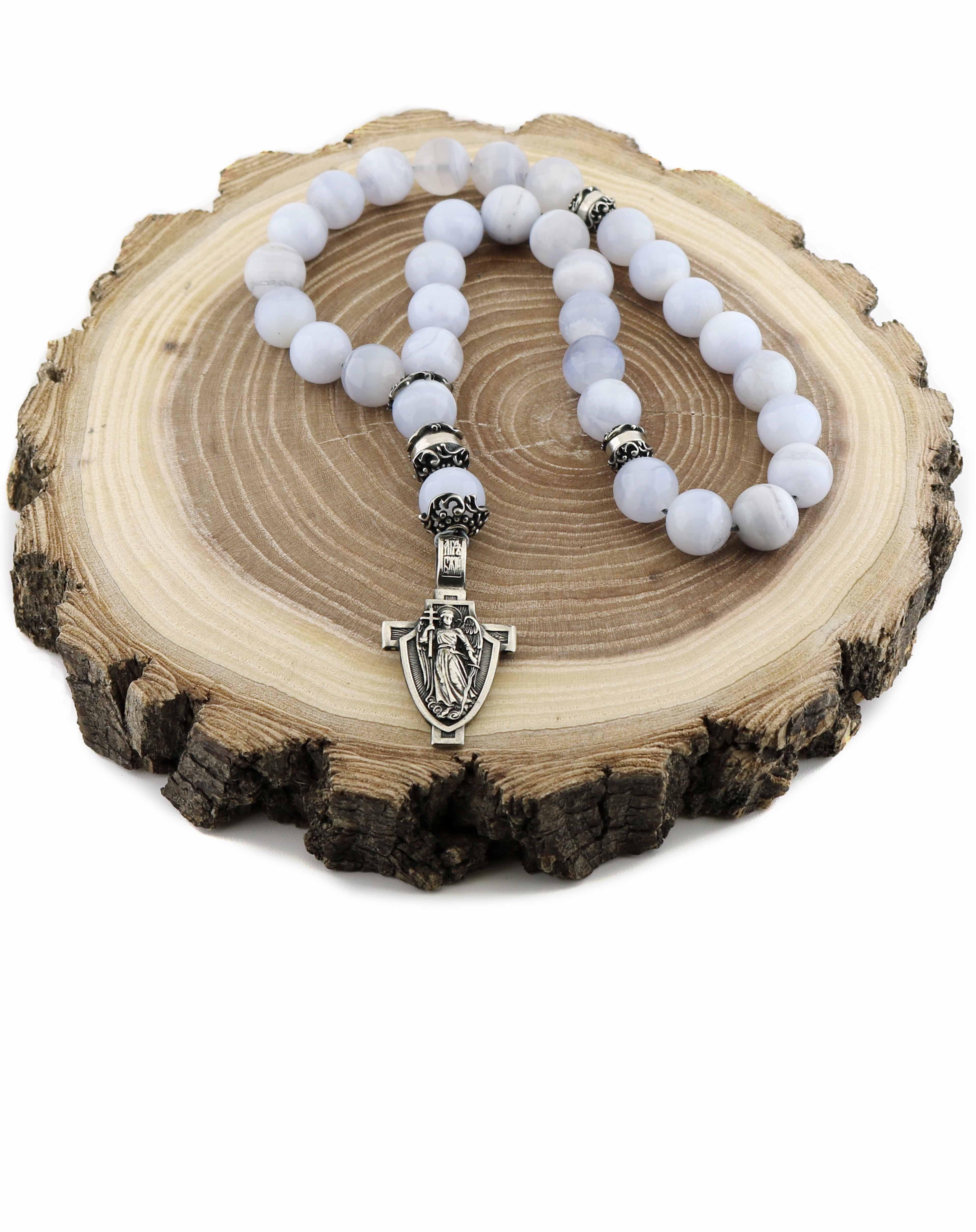 Православные четки из голубого агата "Ангел Хранитель"